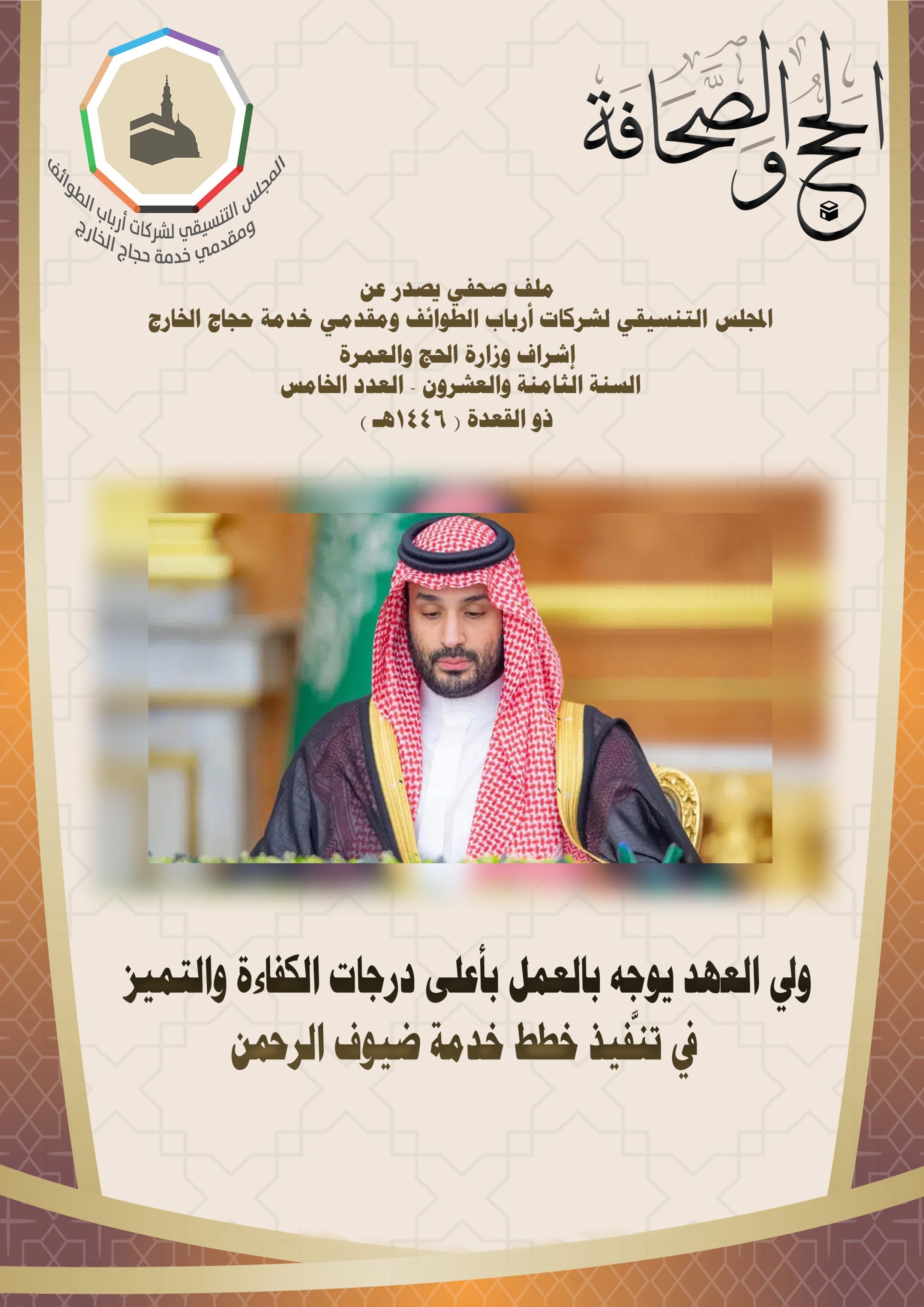 (الحج والصحافة) عبارة عن ملف إعلامي وثائقي ربع سنوي، يتولى إصداره المجلس التنسيقي لشركات أرباب الطوائف ، مقاس (A4)، ومن أبوابه الرئيسة: (القيادة وشؤون الحج، وفعاليات وزارة الحج، وفعاليات المجلس التنسيقي لشركات أرباب الطوائف ومقدمي خدمة حجاج الخارج ، واستعدادات أجهزة الدولة للحج، وأخبار متفرقة، وكُتّاب ومقالات).